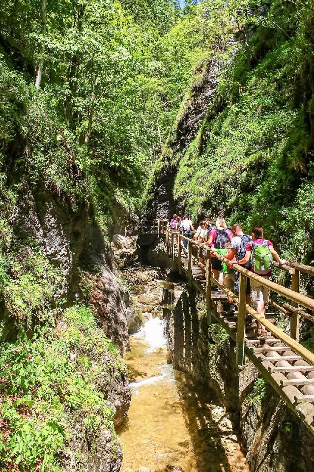Az utazást követően egy közepesen meredek úton sétálva közelítjük meg a szurdok bejáratát, ahol a belépők megvásárlása után elindulunk, hogy a 2900 lépcsőfokot, 170 pallót és létrát “meghódítsuk”. Ezek a döbbenetes számok nem jelentenek leküzdhetetlen akadályokat, közel 2 óra alatt szép, kényelmes tempóban feljuthatunk Ausztria egyik legszebb szurdokának a tetejére. A túra alatt végig meseszép vízesésekben, zúgókban és sziklafalakban gyönyörködhetünk. A Medve-szurdok az egyik leghosszabb vízeséses szurdok Európában.