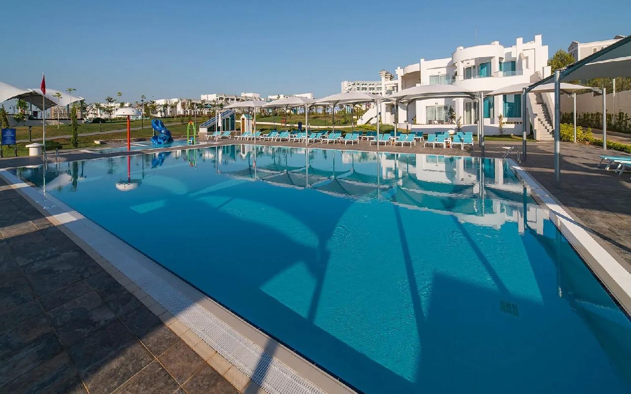 Fekvése: a Limak Cyprus Deluxe Hotel a Famagusta közelében, a Bafra üdülőövezetbe, Famagusta történelmi városközpontjától kb. 40 km-re található és Ciprus északi partvidékének (a törökök által lakott részen), egyik legmodernebb és leglátványosabb szállodakomplexuma. A szálloda közvetlenül a homokos tengerparton fekszik, ahol kristálytiszta, sekély víz várja a vendégeket. A partszakasz tökéletes úszásra, napozásra és vízisportokra egyaránt. A hotel tágas, pálmafákkal szegélyezett kertje, medencéi és modern pihenőterei egy igazi mediterrán paradicsom hangulatát idézik. Ez a lenyűgöző, 598 szobás 5 csillagos tengerparti üdülőhely minden korosztály számára ideális választás, legyen szó családi nyaralásról, pihenésről kettesben, vagy luxuskörnyezetben eltöltött kikapcsolódásról. A Larnaca nemzetközi repülőtér kb. 100 km-re, így a transzferidő a határátkeléstől függően kb. 2 órát vesz igénybe. A környék csendes és exkluzív, kizárólag 5 csillagos üdülőkomplexumokból áll, így ideális a nyugodt, luxus pihenésre vágyó vendégek számára. A szálloda saját aquaparkkal, kaszinóval, spa- és wellness központtal, valamint exkluzív éttermekkel várja vendégeit. A Limak Cyprus Deluxe Hotel a legjobb választás azoknak, akik a luxust, a kényeztetést és a szórakozást keresik Észak-Cipruson. Tökéletes választás családok, párok és nagyobb baráti társaságok számára egyaránt. A hotel szolgáltatásai színvonalasak, a személyzet kedves és figyelmes, az étkezés pedig a Limak lánctól megszokott prémium minőséget képviseli.