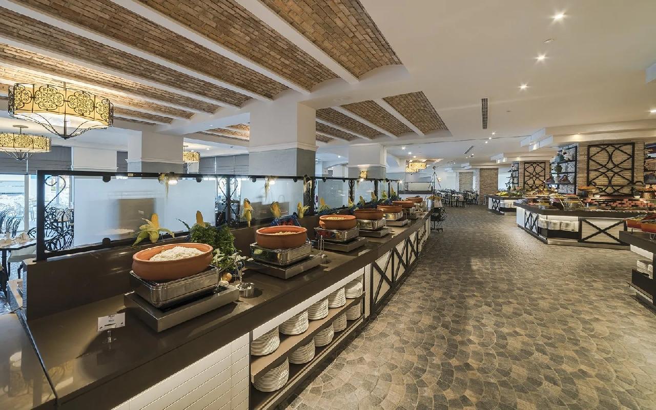 Ellátás: ultra all inclusive ellátás, benne: bőséges büféreggeli, ebéd és vacsora a főétteremben – nemzetközi és helyi fogásokkal, frissen készült ételekkel, látványkonyhával és éjjeli vacsora (00:00-02:00), könnyű grill ételek, pizzák és tésztafélék a snack étteremben (12:00-16:00), korlátlan és térítésmentes italfogyasztás az étkezések és a szálloda legtöbb bárjában, az italválaszték a szálloda által meghatározott helyi és import prémium márkás alkoholos, alkoholmentes italokra és koktélokra is vonatkozik azonban a palackozott italokra és a frissen facsart gyümölcslevekre nem alkalmazható. Sütemények, kávé és tea fogyasztása a lobby bárban (16.30-18.30), jégkrém a snack étteremben (16.00-18.00), a csúszdapark használata (7 különböző csúszda, 10:00-12:00 és 14:00 -17:30 között), a sportpályák használata, darts, asztalitenisz, fitneszterem, fedett medence, törökfürdő, szauna és gőzfürdő használata. A megjelölt időpontokon kívül illetve a szálloda egyes bárjaiban és a tematikus éttermeiben a fogyasztás térítés ellenében.