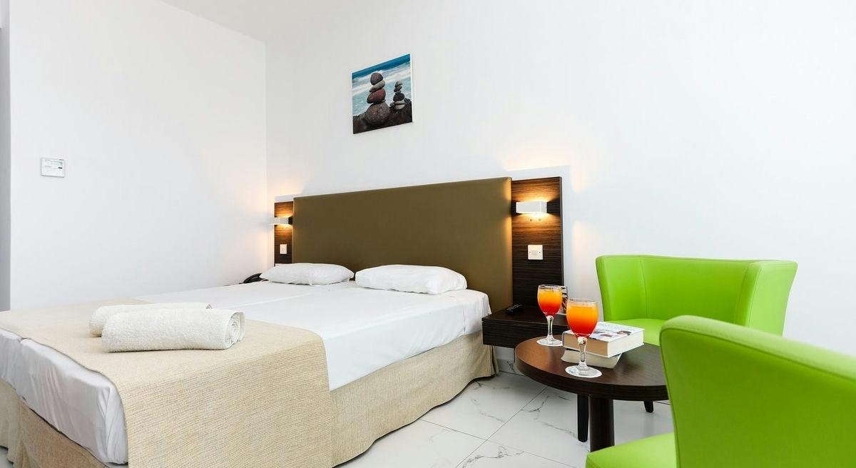 Szobák: minden standard szoba praktikusan berendezett, egy hálószobás (~22 m2), fürdőszobás, légkondicionálóval, hajszárítóval, síkképernyős tv-vel, vízforralóval, széffel, minihűtővel és telefonnal felszerelt. A szuperior szoba (~24 m2) extra kényelmet nyújt, modern dizájnnal és felszereltséggel és a szobában egy kis ülősarok (dohányzóasztal, székek) is található. A szuperior családi szoba hasonló felszereltségű, nagyobb alapterületű (~30 m2), a szobákban két ágy és pótágyként dívány (vagy normál ágy) található. A deluxe szobák (~24 m2) a szálloda legszebb szobái, ezek a szobák extra kényelmi funkciókkal vannak felszerelve, mint például egy 43 hüvelykes Smart TV, eszpresszó gép (napi kapszulafeltöltéssel), fürdőköpeny és szobapapucs. Ha magasabb szintű kényelmet keres, a deluxe szoba ideális választást jelent. Minden szobához erkély vagy terasz tartozik, szárazföldi, medencére vagy tengerre néző kilátással (különböző irányú rálátással).