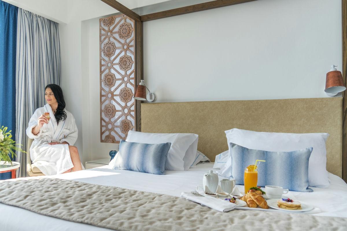 Szobák: minden classic szoba modern bútorokkal berendezett, hagyománykövető mediterrán színvilágú, egy hálószobás (~23m2), fürdőszobás, légkondicionálóval, síkképernyős tv-vel, hajszárítóval, széffel és telefonnal felszerelt. Minibár fogyasztás, térítés ellenében. A szuperior (~23m2), elegáns berendezéssel, extra kényelmi eszközökkel felszerelt pl: vízforraló (tea és kávéfőzési lehetőség), fürdőszobai köntös és papucs. A családi (~23m2) szobák játékos és modern kialakításúak, családias és otthonos légkörrel, a gyermekek elhelyezési emeletes ágyon történik, felszeltségük a classic szobákkal azonos. A prémium szobák (~23m2), felszereltségben megegyeznek a szuperior szállodai szobákkal, egyedi karakterrel rendelkeznek; magas szintű kényelmet biztosítanak, a szobákban extraként eszpresszó kávéfőző is található. Mindegyik (classic, szuperior, prémium, családi) szobához erkély tartozik oldal tengerre néző kilátással.