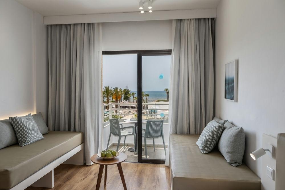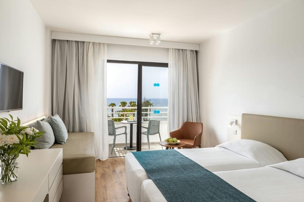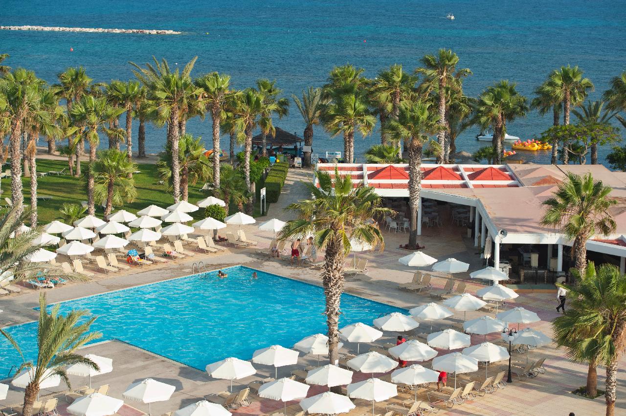Fekvése: Paphos üdülőövezeti, Kato Paphos elnevezésű részén, a város szélén, közvetlenül a tengerparton, a térség egyik leghosszabb egybefüggő homokos strandja közelében épült, családok számára ideális, saját kis csúszdaparkkal és barátságos személyzettel rendelkező klubhotel. A szálloda előtti partszakasz sziklás, azonban kb.200 méter távolságra a helyiek körében is rendkívül népszerű homokos strand található. A hotel elhelyezkedése ideális a pihenni vágyó családok és az aktív utazók számára egyaránt: a szálloda közelében kezdődő tengerparti sétányon végighaladva elérhető a festői paphosi kikötő és az óváros bájos kávézói, üzletei. A szálloda rendezett kertje és mediterrán növényzete igazi nyugalom-sziget, miközben a környék hangulata garantálja a ciprusi életérzést. Paphos városközpontja és a kikötő kb.3 km-re fekszik. Buszmegálló található a szálloda közelében, ahonnan rendszeres járatok indulnak Paphos központja felé.