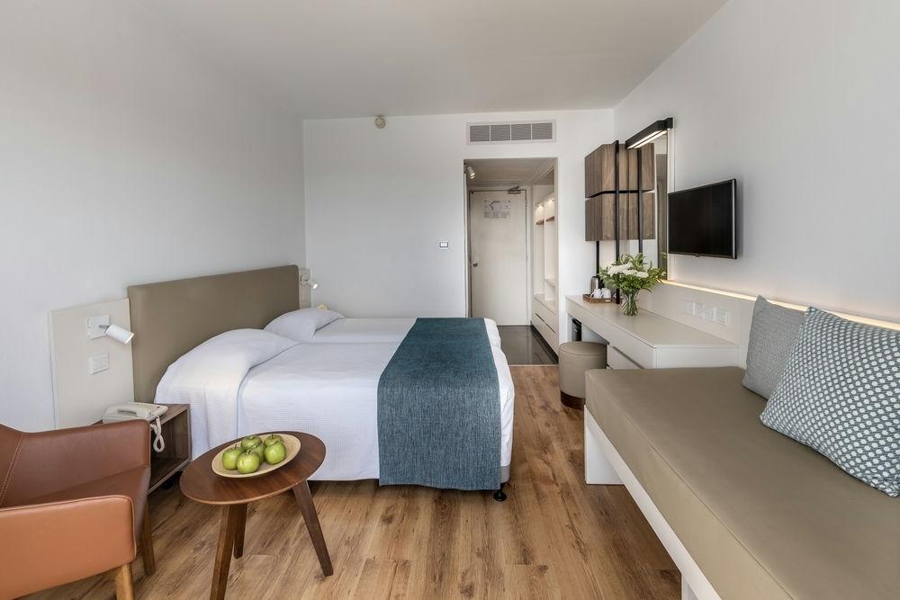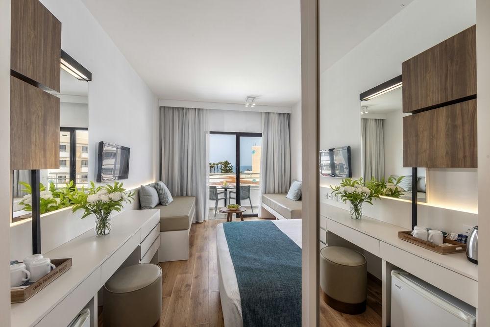 Szobák: minden szoba barátságosan berendezett, világos, letisztult stílusával a nyugodt pihenést szolgálja, egyhálószobás (kb. 19 m2), légkondicionált, fürdőszobás, síkképernyős tv-vel, telefonnal és vízforralóval (kávé-, teakészítése lehetőség), és minihűtővel felszerelt. A családi szobák felszereltsége hasonló, kialakításuknak köszönhetően kényelmes teret biztosítanak a közös pihenéshez – ideális választás gyermekes családok számára. A szobákhoz erkély tartozik szárazföldre vagy tengerre néző kilátással. Térítés ellenében szobaszéf a helyszínen bérelhető.