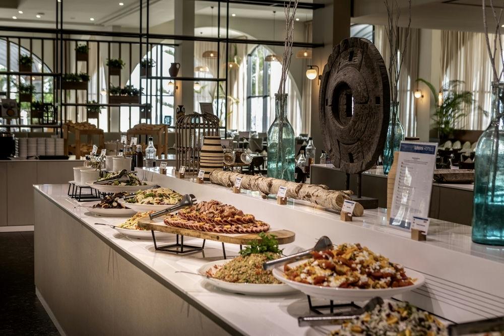 Étkezés: all inclusive ellátás. Az all inclusive tartalmazza: reggeli (07.00-10.00), ebéd (12.30-14.30) és vacsora (18.00-21.00), snack ételek, pizzák és szendvicsek (10.00--17:30) éjszakai snack ételek (22.00-24.00), délutáni kávé és sütemény, helyi jégkrémek, korlátlan italfogyasztás 10–24 óra között: a szálloda által megjelölt röviditalok, koktélok, sörök, borok, gyümölcslé, szénsavas üdítőitalok, ásványvíz, kávé, tea (prémium italok kivételével). Az all inclusive ellátás bőséges kínálata minden ízlést kielégít. A szálloda főéttermében a nemzetközi és helyi konyha ízei találkoznak: nemzetközi és ciprusi specialitások és látványkonyhás ételkészítés várja a vendégeket. Napközben snackek, frissen sült pizzák és hűsítő italok gondoskodnak a folyamatos kényeztetésről. A bárokban ízletes koktélokkal, helyi borokkal zárhatjuk a napot – mindezt a tengerparti naplemente látványával kísérve.
