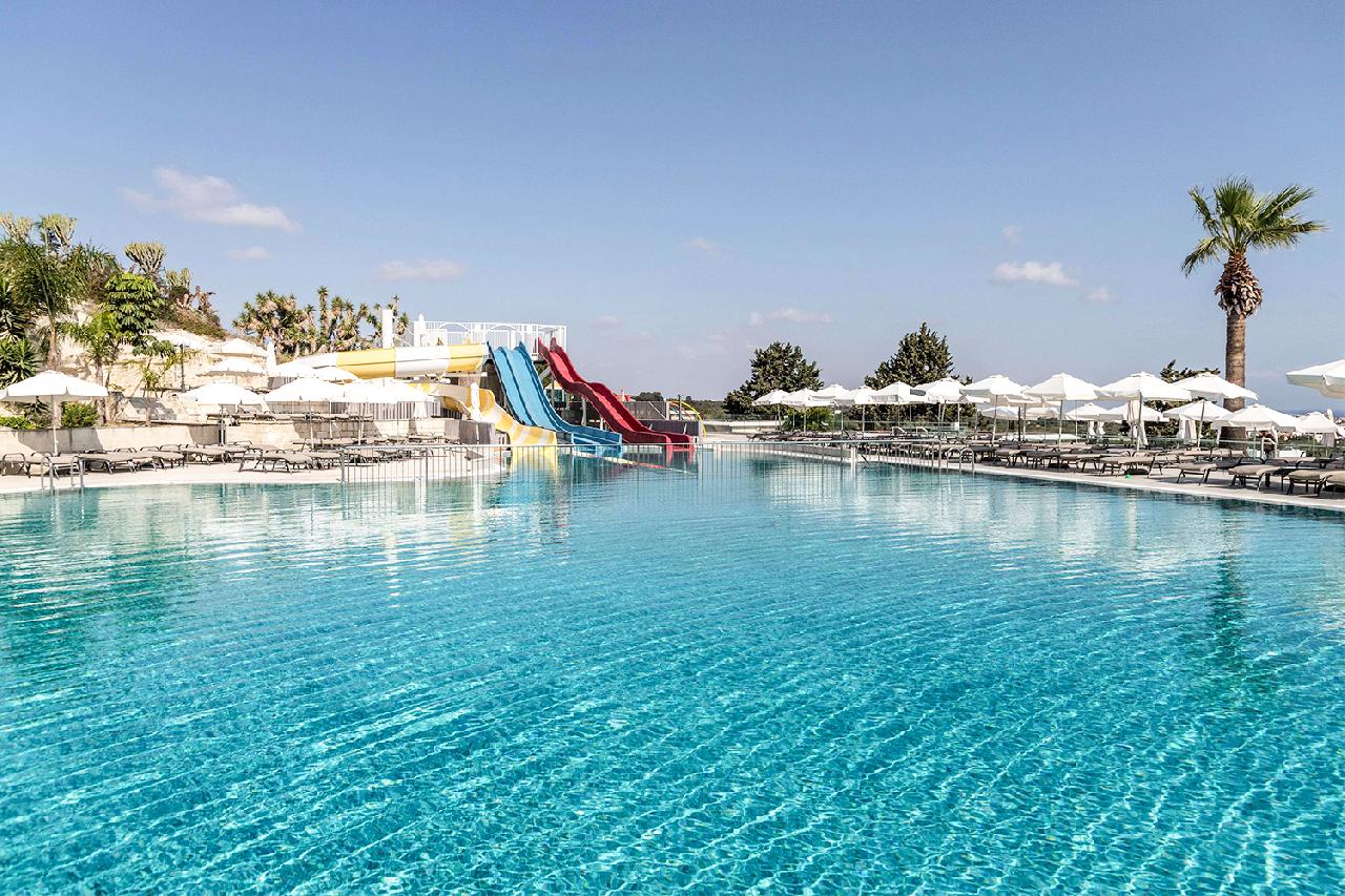 Fekvése: Protaras, Ayia Napától mindösszesen 7 km-re, lankás domboldalon található, festői szépségű üdülőhely. A Louis St. Elias Resort festői helyen található, Protaras egyik domboldalán, zöld, ápolt kerttel körülvéve, kilátással Protaras-öbölre és közvetlenül a híres Ayios Elias Kápolna mellett. A tengerpart kb. 15 perces sétára van a szállodától, míg Fig Tree Bay strandja kb. 3 km-re található. Protaras szórakozónegyede, éttermek, üzletek, bárok kényelmes sétával elérhetők (kb. 10 perc). Pihenjen Ciprus egyik legszebb panorámájú üdülőhelyén! A modern, zöld környezetben fekvő resort komfortos szobáival, csúszdás medencéivel, wellness szolgáltatásaival és prémium all inclusive ellátásával a családok és párok kedvenc választása. A Fig Tree Bay homokos strandja könnyedén elérhető az ingyenes szállodai buszjárattal. Teljes kikapcsolódás, gondtalan nyaralás és mediterrán hangulat egy helyen!