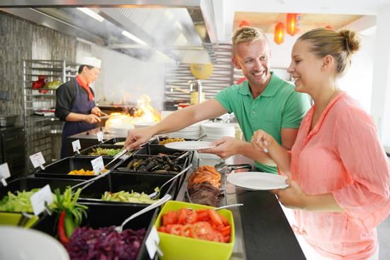 Étkezés: all inclusive, benne: büfé reggeli 07:30-10:00, késői reggeli 10:00-12:00 (kontinentális), büfé ebéd 12:30-15:00 és vacsora 19:00-21:30 ( váltakozó témájú vacsora estek), korlátlan italfogyasztás 11–23 óra között (helyi alkoholos és alkoholmentes italok a szálloda által megjelölt választékra), napközbeni könnyed ételek (16:00-17:00) szendvicsek, délutáni tea, sütemények, kávé, különféle napközbeni szervezett programok, játékok pl: minigolf, asztalitenisz, térítésmenetes edzőterem, szauna, törökfürdő használat. Előzetes helyszíni regisztrációval egy alkalommal vacsora átjelentkezés a szálloda a’ la carte (olasz, ázsiai, brazil, amerikai stb.) éttermeibe.
