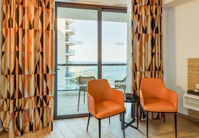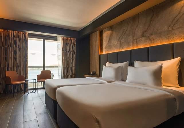 Szobák: minden komfort szoba szépen berendezett, egy hálószobás (~20 m2), légkondicionálóval (központilag vezérelt), fürdőszobával, hajszárítóval, síkképernyős tv-vel, vízforralóval és telefonnal felszerelt. Minibár térítés ellenében. A deluxe szobák berendezése elegánsabb, a szobák elhelyezkedése előnyösebb (felsőbb emeleteken). A szobákhoz erkély, balkon tartozik, szárazföldre vagy tengerre néző kilátással. A szálloda mozgáskorlátozott vendégek számára kerekesszékkel használható liftet, részben kerekesszékkel használható fürdőszobákat és akadálymentes hozzáférést biztosít a közösségi terekhez.