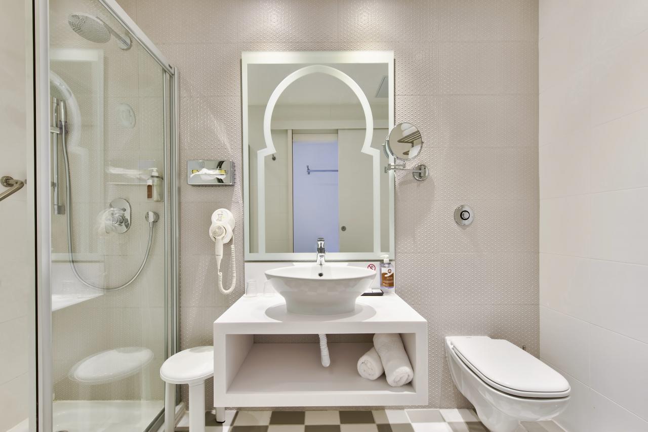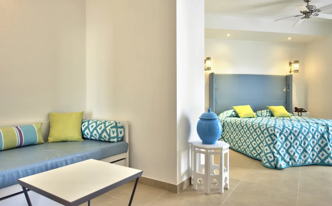 Szobák: minden standard szoba szépen berendezett, egyhálószobás (~20m2), fürdőszobás, légkondicionálóval, hajszárítóval, ventilátorral, LCD tv-vel, vízforralóval és telefonnal felszerelt. A családi szobák hasonlóan felszereltek, nagyobb alapterületű (~30m2) egylégteres szobák, akár kétgyermekes családok számára ideális elhelyezést biztosítanak. Széf és minibár térítés ellenében. A szobákhoz balkon vagy terasz tartozik, utcai, medencére vagy tengerre néző kilátással.