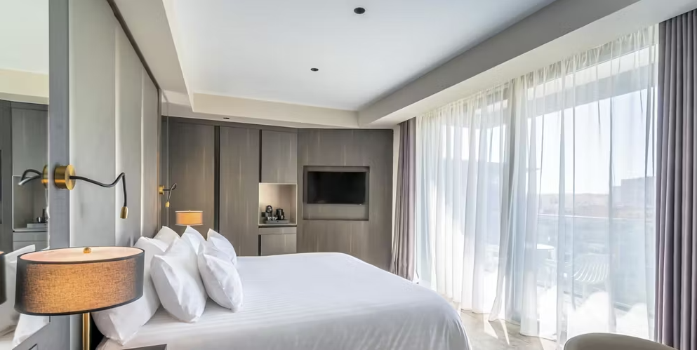 A 35 m²-es Superior szoba terasszal és részleges tengerre néző kilátással mindent kínál, amire szüksége van egy kellemes tartózkodáshoz. A tágas és világos szobák ideális elrendezéssel és semleges, földszínű dekorációval rendelkeznek, amelyek pihenésre csábítanak és fokozzák a jólét érzését.