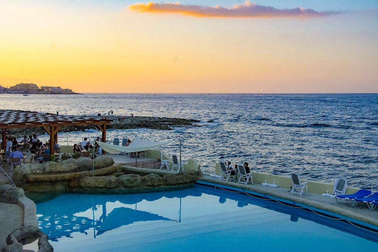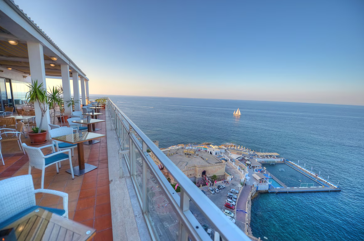 A szálloda közvetlenül Sliema sziklás tengerpartján található, panorámabárral, tetőmedencével és wellnessrészleggel, kiváló ár-érték arányban.