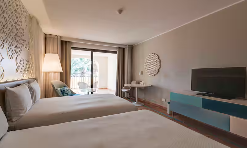 Szobák: minden deluxe szoba egy hálószobás (~30m2), elegánsan berendezett, légkondicionált, nagyméretű ún. King ággyal, fürdőszobával (fürdőköntös és szobapapucs), hajszárítóval, lapos tv-vel, vízforralóval (tea és kávékészítési lehetőség) szobaszéffel, vasalóval és telefonnal felszerelt. A szobákhoz erkély tartozik, kertre, kikötőre vagy a tengerre néző kilátással. Minibár, térítés ellenében.